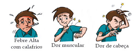 A doença pode ser assintomática, ou seja, um paciente é portador de uma doença ou infecção, mas não exibe sintomas. Quando há manifestação dos sintomas, a doença pode regredir espontaneamente de 3 a 7 dias sem deixar sequelas. Os sintomas principais, que se apresentam em 90% dos pacientes são: febre alta com calafrios, dor de cabeça e dor muscular. Em torno de 15% dos casos há evolução para a fase tardia, com manifestações graves e letais, incluído hemorragias, complicações renais, torpor e coma.